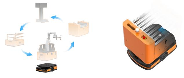 搬運系列叉取機器人負載覆蓋1000kg到3000kg,最高行駛速度可達2m/s, 輕 量化車體設計,配備高容量電池,可依據需求選擇合適大小的電池,精準需求減少冗余,專為機器人量身設計的車體厚度,大大減少了運行的通道寬度,提升了物料存儲空間。全系列采用環境輪廓導航方式,持紋理導航, 充分利用環境信息進行定位,方便部署和實施。